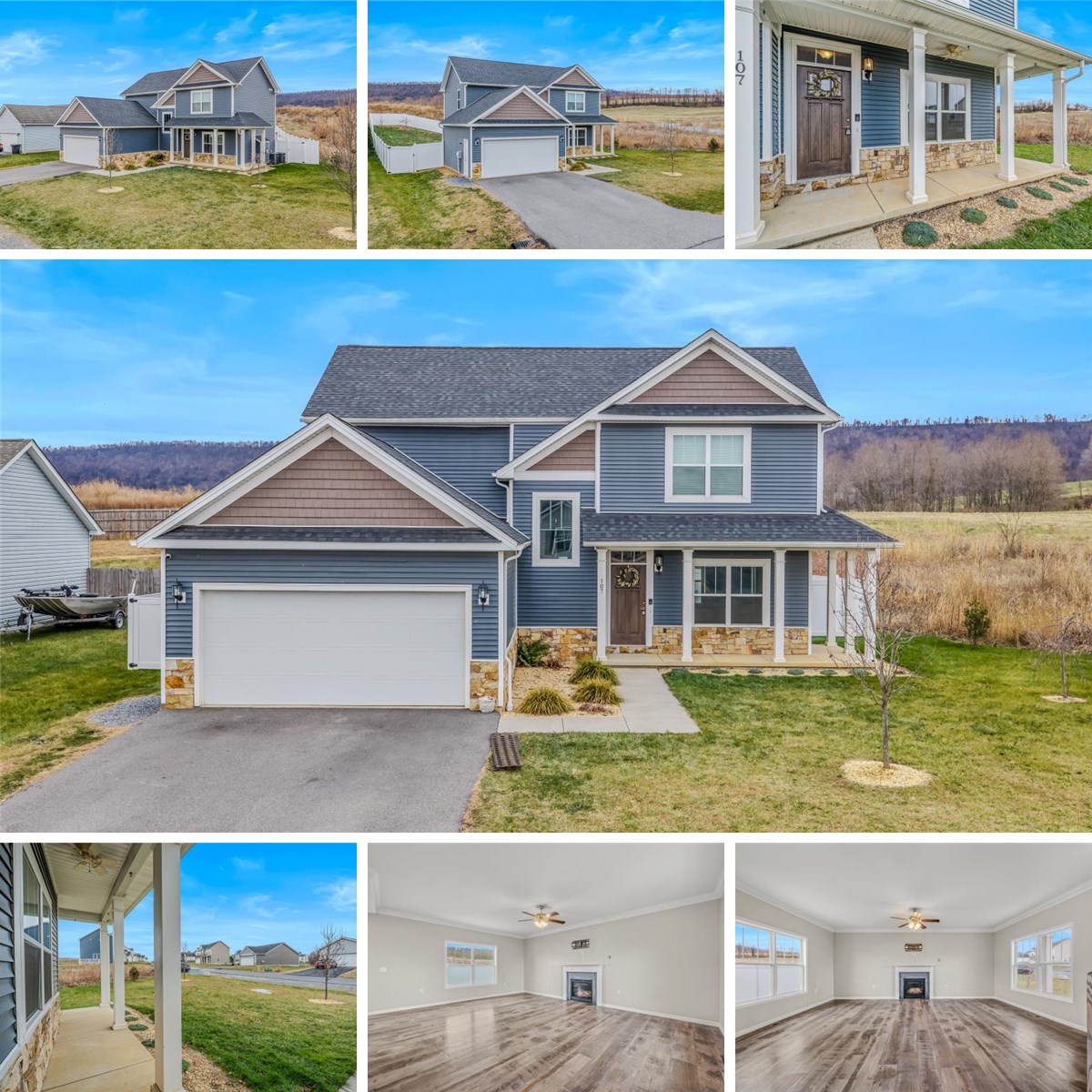 Beautiful Arts & Crafts with wrap around front porch & real stone waters table- 3 levels with 4 bedrooms/ 3.5 baths in the Butlers Bridge Community- Built in 2020 - This home offers 3 finished levels- Open floorplan with spacious great room with cozy propane/gas fireplace, formal dining room with tray ceiling & Designer Shaker kitchen with oversized 8 x 4 granite island, stainless steel appliances, 2 piece crown molding, two tone paint, main level LVP flooring, Hardwood steps to upper level, Upper level features 3 bedrooms-Master with tray ceiling & large walk in closet, Master with ensuite luxury bath with dual sink vanity, 4 x 4 oversized tile shower with separate handheld and regular shower head, separate soaking tub, Lower level is fully finished with 4th bedroom, rec room full bath ,den, & areaway entrance. Rear yard is fully fenced with a white vinyl privacy fence & stamped concrete large patio. This home features a enrgy efficient Rianni Propane Tankless Water heater & 2 HVAC systems! Hedgesville School DIstrict! ALL THIS NESTLED AGAINST THE ORCHARDS & NORTH MOUNTAIN YET CONVENIENTLY LOCATED MINUTES TO 81 AT EXIT 14 DRY RUN ROAD.