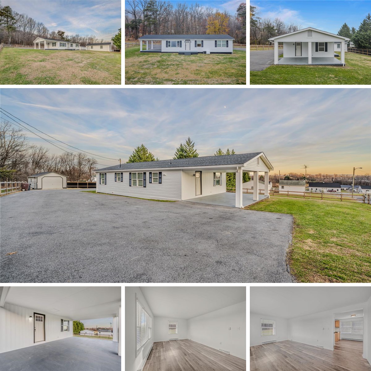 Welcome to this newly remodeled ranch-style home offering gorgeous views along Dry Run Road in Martinsburg. This property has many upgrades, featuring a brand-new roof, all-new flooring, fresh interior paint, central air, and modern concrete countertops. The main home includes 3 bedrooms and 1 full bath, providing comfortable, single-level living. Outside, you’ll enjoy over half an acre of fenced yard, a spacious driveway, attached carport, storage shed, and an above-ground pool—perfect for relaxing or entertaining. A major bonus is the detached garage, which has been fully outfitted with its own kitchen, full bathroom, and bedroom—an ideal setup for an in-law suite, guest quarters, or potential rental income. Homes like this don’t come along often—schedule your showing today!