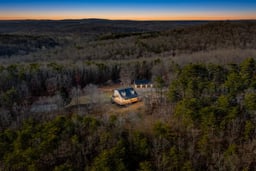 Nestled between the mountains, this charming farmhouse-style residence offers a harmonious blend of modern comfort and rustic charm. With 4 spacious bedrooms and 2 full bathrooms, this home is designed to cater to your every need, providing a warm and inviting atmosphere that always brings you home. Step inside to discover an open floor plan that seamlessly connects the family room and kitchen, making it ideal for gatherings and everyday living. The kitchen boasts upgraded countertops, a central island with cooktop, and stainless steel appliances, including a dishwasher, garbage disposal and electric oven/range ensuring that meal preparation is both enjoyable and efficient. The cozy breakfast area invites you to savor your morning coffee while basking in the natural light that floods the space through new energy-efficient windows. The living area features beautiful hardwood floors and exposed beams, and a brick wood-burning fireplace. Major renovations completed in 2022 and 2025 have elevated this home to excellent condition ensuring that you can move in with peace of mind. The partially finished basement offers additional space for recreation or storage, complete with two sump pumps and a water treatment system for added protection. Outside, spanning an impressive 26.5 acres, this property offers a private and secluded retreat surrounded by nature and the tranquility of mountain living. The wrap-around porch and upstairs bedroom balcony beckon you to relax and soak in the natural beauty all around you. Thoughtful exterior features include landscaping with fruit trees, a grape arbor, a garden, a swing, a hammock and several picnic tables. Additional features include a new more efficient gutter system as well as new siding, and multiple .outbuildings, including a shed, a wood storage shed and a poultry house. Parking multiple vehicles is a breeze with a circular driveway leading to an oversized 1500 square foot 4 bay detached garage with loading dock that easily accommodates more than four vehicles and a generous workspace. The lot is unrestricted, allowing for farming, horseback or ATV riding, gardening or hunting and shooting as several berms are already in place. Whether you're seeking a peaceful retreat, a hobby farm, or a place to entertain, this property is a true gem that promises comfort, convenience, and a connection to the great outdoors. Here you will enjoy year round access to your own private oasis. Don't miss the opportunity to make this enchanting residence your own where every day feels like a getaway!